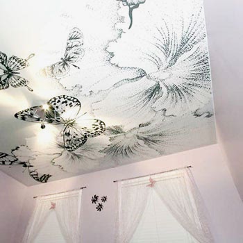 Натяжные потолки монтируются на расстоянии 4 см от существующего потолка, если у него нет сильных перепадов. В данное пространство можно скрыть проводку, ржавый верх трубы или Pin-Up