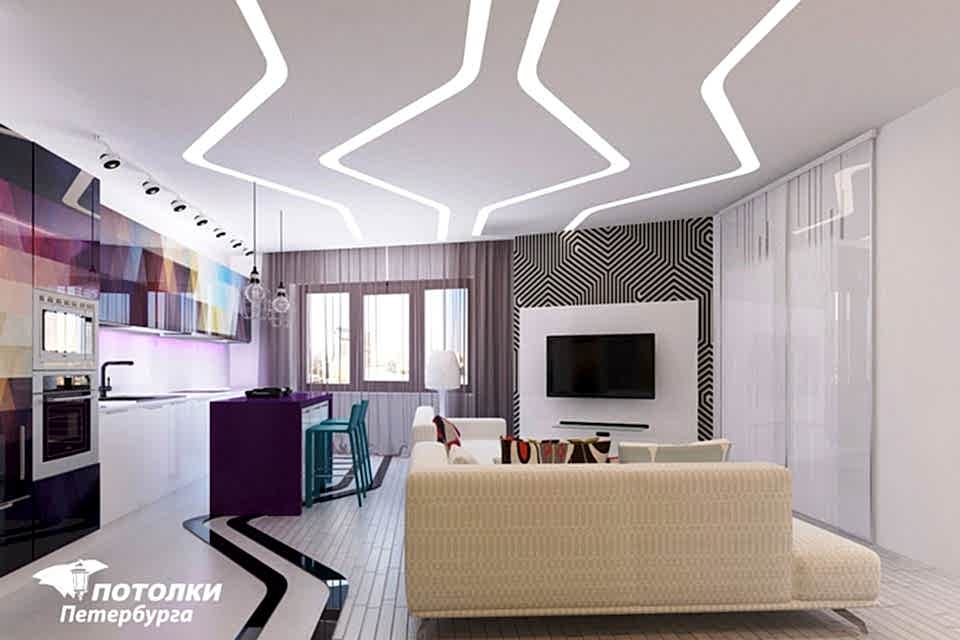 Одной из интересных технологий дизайнерского оформления натяжных потолков является парящая световая линия. Она представляет собой элемент освещения произвольного размера и расположения. С помощью этого приёма можно отлично обыграть зонирование помещения или осветить длинную вытянутую комнату. Натяжные потолки со световыми линиями можно использовать в качестве декоративного или дополнительного освещения, делая при этом акцент на детали интерьера. Кроме того, установив диммер, Вы сможете самостоятельно регулировать мощность светового потока, создавая яркое или более мягкое, приглушенное освещение. При монтаже разных полотен в один уровень, с помощью парящих линий можно стильно и красиво обыграть стык полотен. Форма линий, геометрия, длина и расположение может быть совершенно любой: с прямым углом стыковки, ломаные и радиусные, в зависимости от дизайнерской концепции при Pin-Up интерьера. Это позволяет каждому потолку приобрести индивидуальность.Только по 15 ноября действует скидка -20% на потолки со световыми линиями!