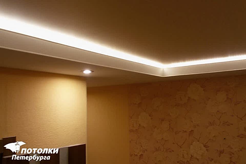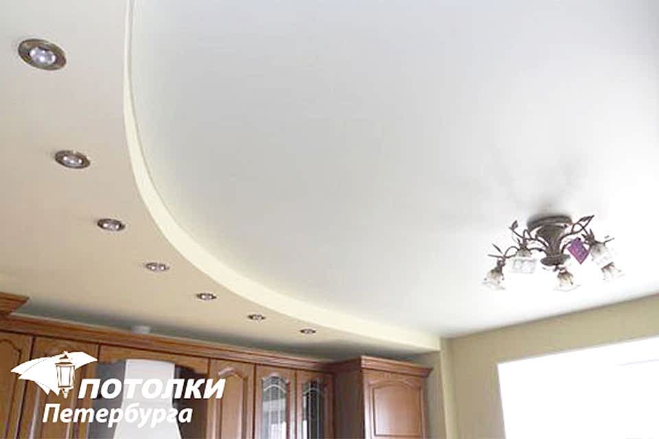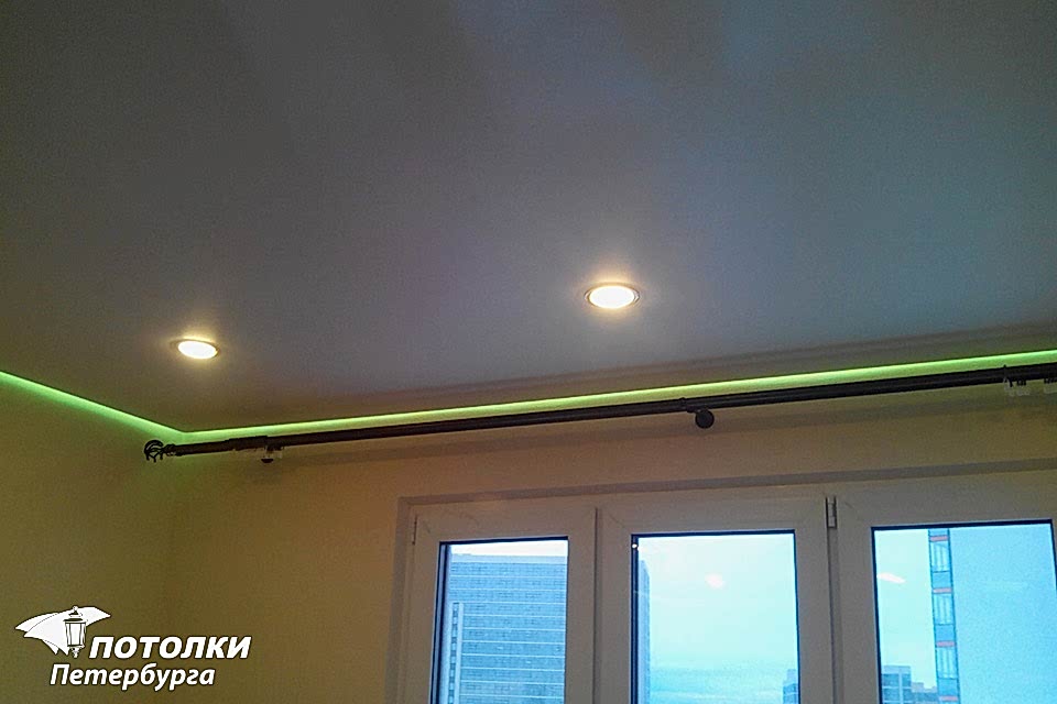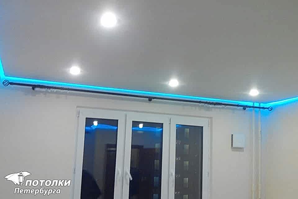 Прежде всего это стоимость полотна натяжного потолка и работа монтажной бригады. Мы Pin-Up проводим различные акции и распродажи для наших клиентов, так на данный момент действует акция "Все светильники в подарок".
