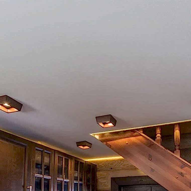 Если дом отапливается круглый год, выбирайте любой материал потолочного полотна: ПВХ или тканевый. Для частных домов без отопления подойдет тканевый потолок, т.к. он устойчив к перепадам температур.