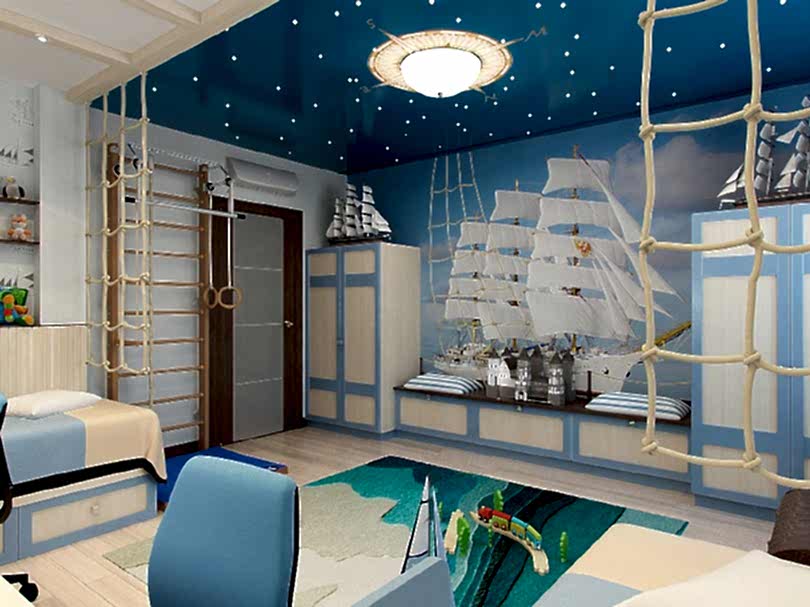 Цветные потолки могут иметь разную фактуру. Pin-Up решения, которые подойдут к любому интерьеру: