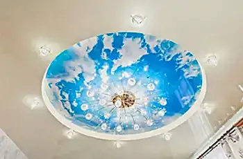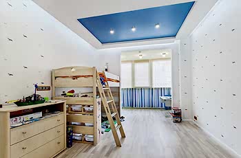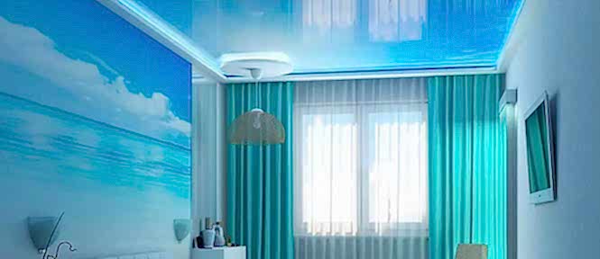 В гостиной оптимально выглядит светло-голубой потолок, придающий помещению простор. И гости, и члены семьи, собравшись в такой комнате, почувствуют свободу и лёгкость. В спальне и детской лучше монтировать комбинированные потолки, имитирующие небесный свод и состоящие из Pin-Up и желтых элементов. Одноцветный натяжной потолок для таких комнат будет слишком холодным, не располагающим к отдыху и расслаблению.