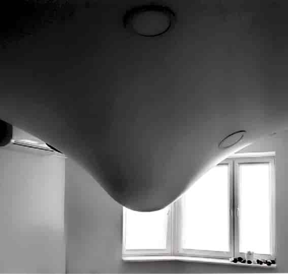 - Pin-Up гарпуна, ослабление профиля или расхождение швов, из-за чего потолок провисает или деформируется